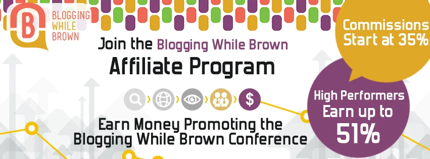 If you would like to sign up for our general public affiliate program, the initial commission is 10% of ticket sales. Get registered for the 2015 Blogging While Brown Conference so you can get the enhanced 35% commission.